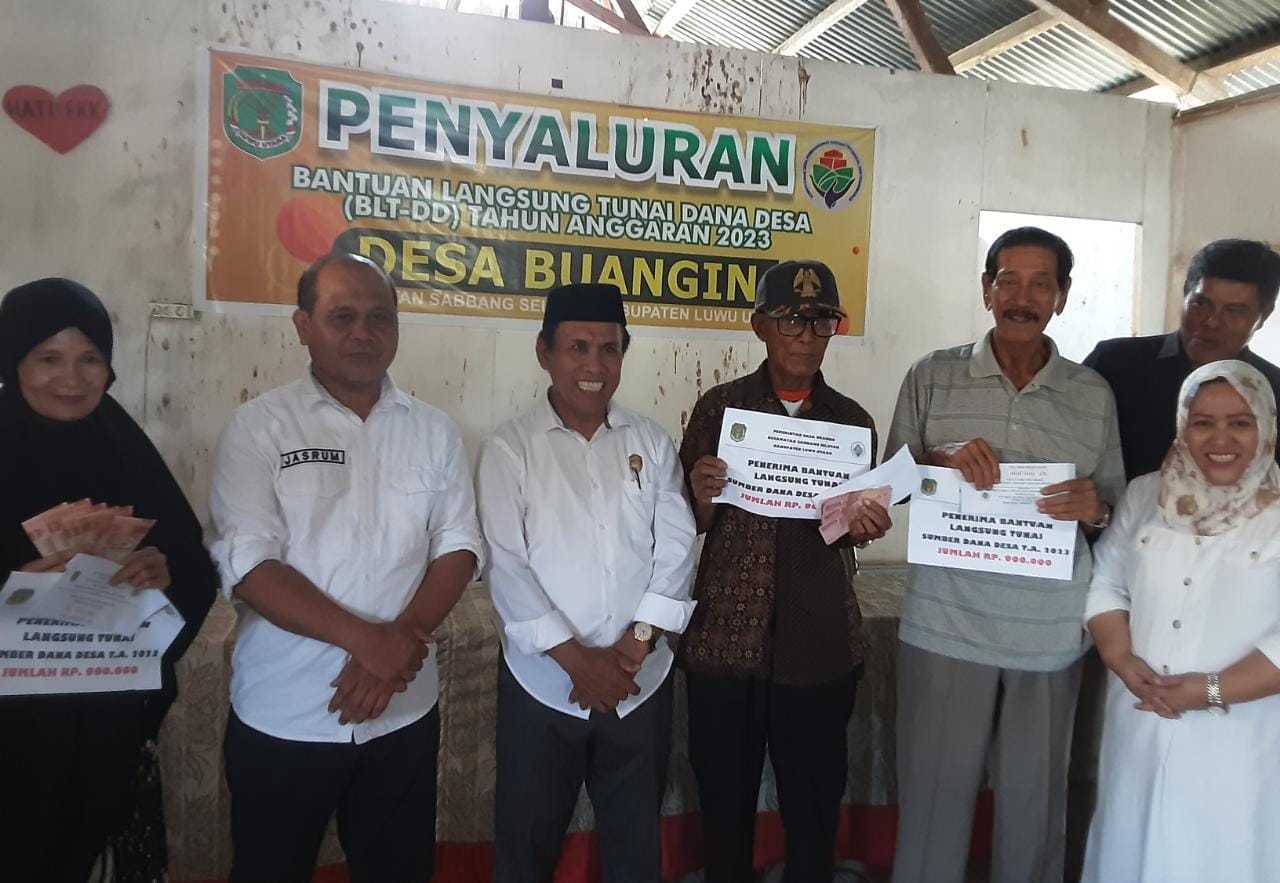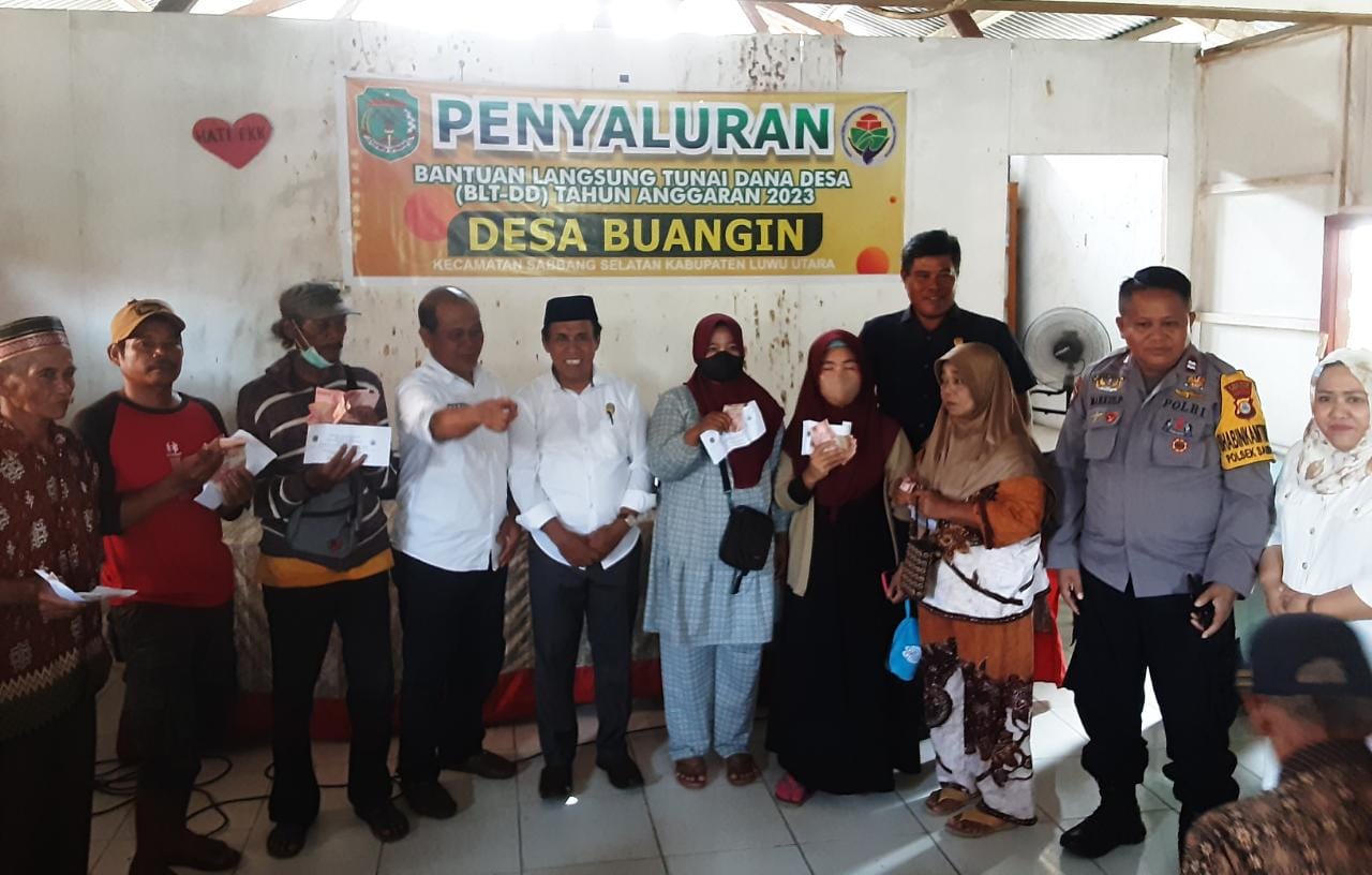 Lepongannews.com-, Luwu Utara – Kepala Dinas (Kadis) Pemberdayaan Masyarakat Desa (PMD) Luwu Utara (Lutra) Sulawesi Selatan (Sulsel), H. Jasrum, menghadiri bpenyaluran bantuan langsung tunai dana desa (BLT-Dana Desa) di Desa Buangin Kecamatan Sabbang Selatan, Rabu 29 Maret 2023.