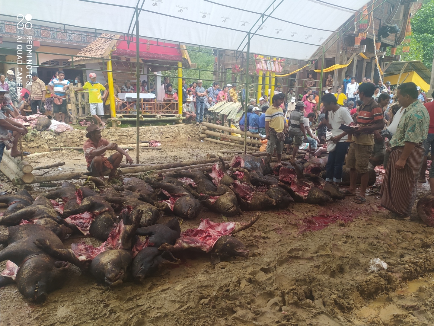 Lepongan News– Toraja Utara-Tradisi Mangrara Banua di Toraja, atau syukuran Rumah Tongkonan-ratusan babi dipotong