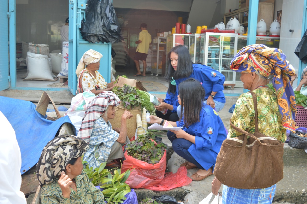 “Sasarannya adalah para penjual yang selalu melakukan transaksi pertukaran uang dan juga kepada Lansia” kata Emelia saat sedang membagikan Hand senitaizer kepada beberapa penjual yang tergolong Lansia.