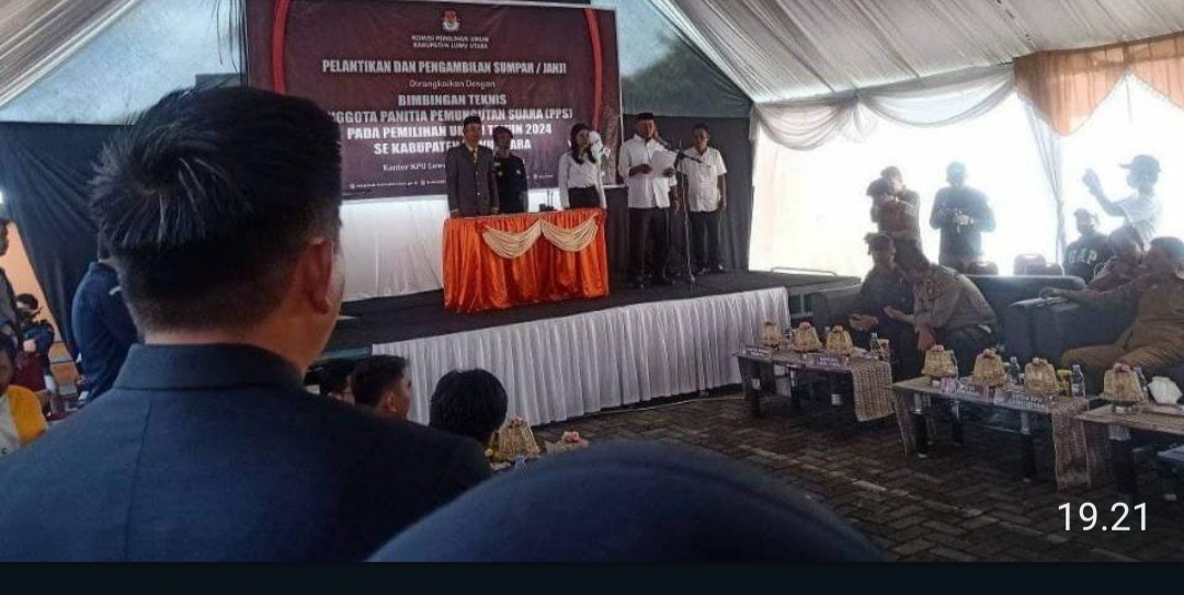Komisi Pemilihan Umum Kabupaten Luwu Utara (Lutra) Sulawesi Selatan (Sulsel) melaksanakan Pelantikan kepada 519 orang Panitia Pemungutan Suara (PPS) Pemilihan Umum Tahun 2024 Lutra,Selasa (24/1/2023).