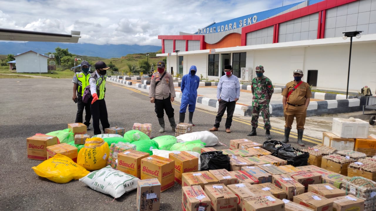 “Kegiatan ini tiap hari dilakukan bila ada pesawat kargo tiba, dan kami bersama Babinsa Koptu Rahmat Z serya Camat Seko Akbal Ali, S.Sos selalu hadir bila ada pesawat kargo tiba, untuk mrnyaksikan semua barang disemprot disinfektan dalam upaya mencegah penyebaran virus corona atau Covid-19, dan dijemur dibawah sinar matahari selama 30 menit,” ujarnya.