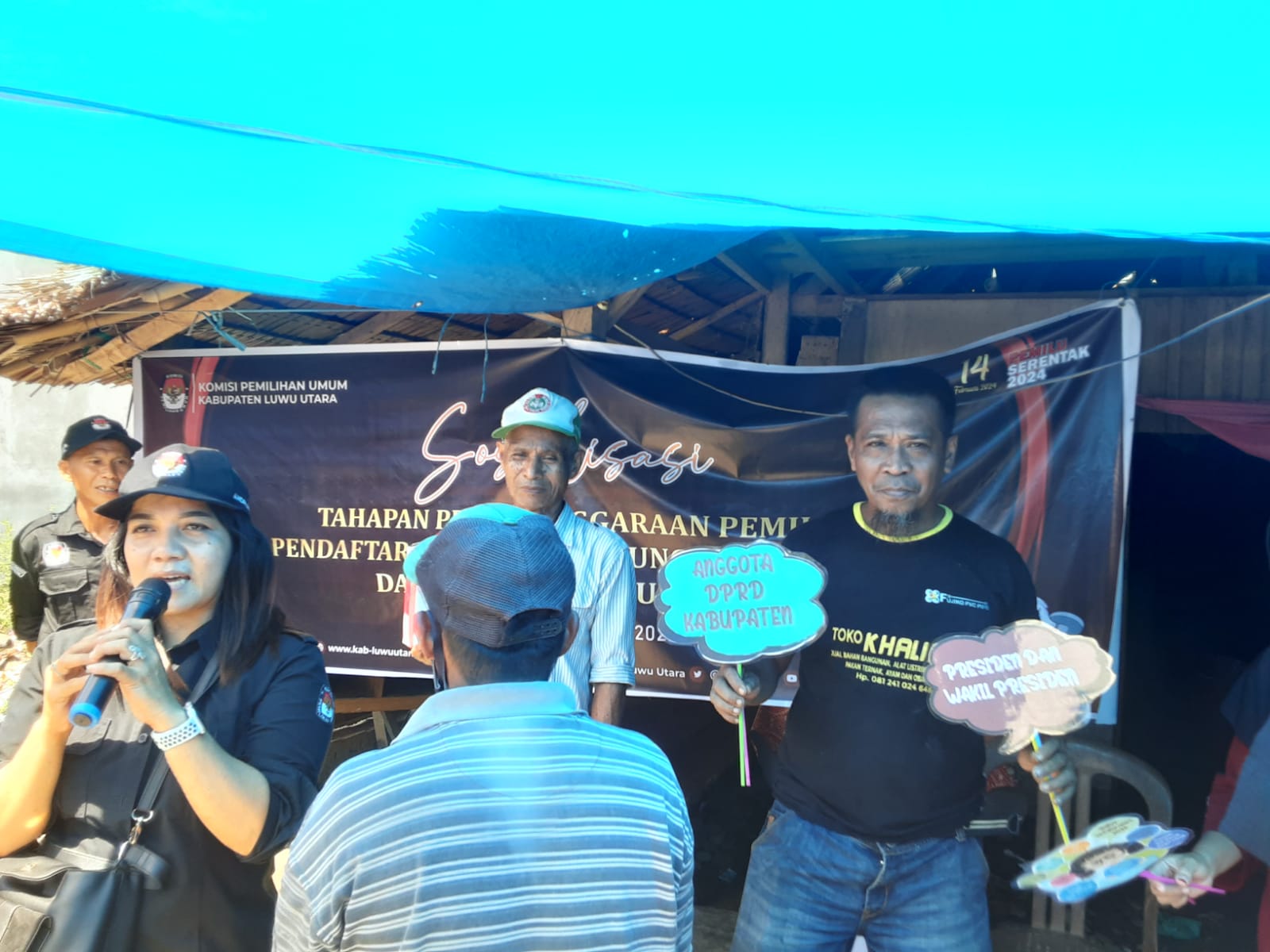 Hadir dikegiatan tersebut Komisioner KPU Luwu Utara dari Devisi Data Supriadi Halim, SM dan Syabil, ST serta sekretariat KPU Luwu Utara. Supriadi mengatakan bahwa, tatap muka langsung dengan masyarakat sangat efektif karena KPU bisa langsung memberikan cara bagaimana mencoblos dan surat suara apa saja yang akan dicoblos.