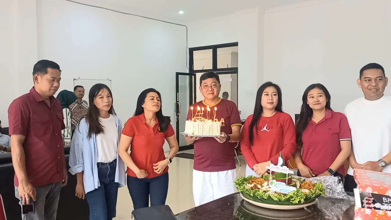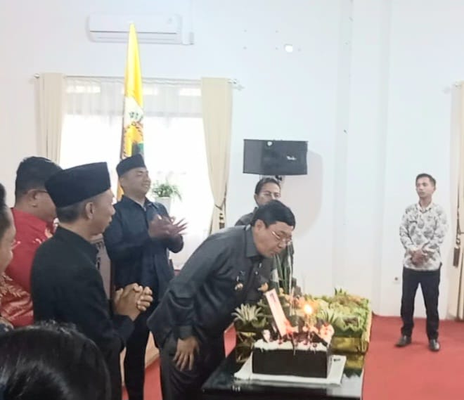 Sebelumnya juga saat pagi masuk kantor Bupati dihadang untuk meniup Lilin yang di skenariokan oleh staf sekertariat Bupati yang bersamaan pihak BPJS berada di ruang tunggu Bupati, saat itu juga terlantun lagu Happy Birthday buat Bupati. (man).