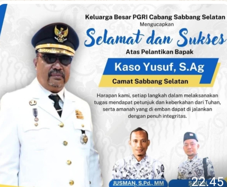 Lebih lanjut, keluarga besar/the big family PGRI Cabang Sabbang Selatan mendoakan agar kepemimpinan Camat Kaso Yusuf dapat berjalan dengan amanah, adil, serta berpihak pada kesejahteraan masyarakat Sabbang Selatan. Ketua PGRI Cabang Sabbang Selatan, Jusman juga berharap bahwa, kebijakan yang diambil akan selalu mencerminkan kepedulian terhadap kepentingan masyarakat terutama bidang Pendidikan.