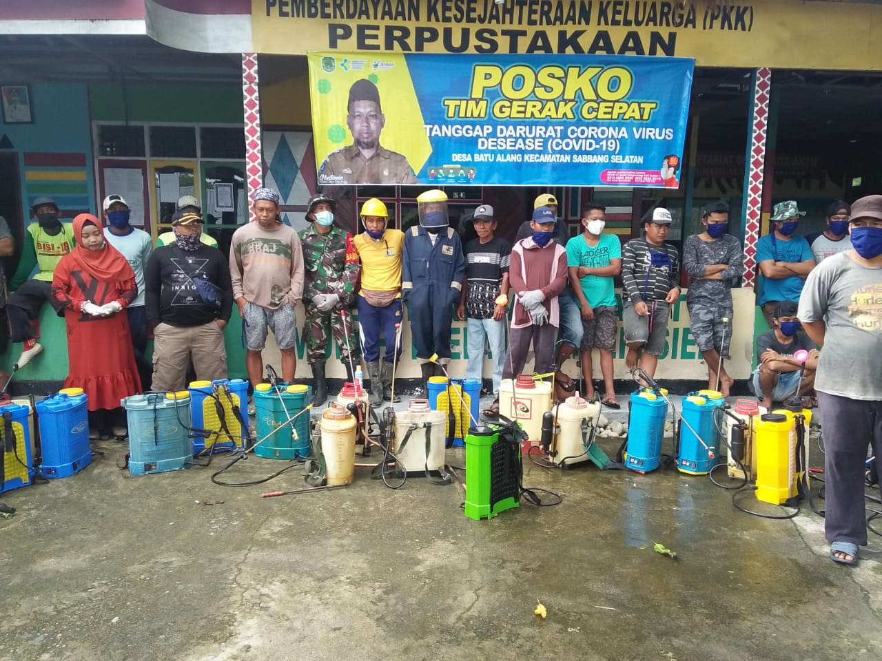 Bukti keseriusan pencegahaan Covid-19, Pemdes Batu Alang bekerjasama Bidan Desa Nurul Aqidah Amd.Keb, dan Dandramil Sabbang Bhabinkamtibmas telah membentuk Posko Tim Gerak Cepat tanggap darurat virus Corona yang bertempat di kantor Desa Batu Alang, Kecamatan Sabbang Selatan, Kabupaten Luwu Utara, Sulsel.(Jus)