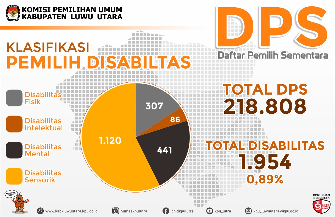 “Kasubag Teknis menyebutkan angka ini dari hasil rekapitulasi pemuktahiran DPS dari total DPS 218.808 pemilih di Bumi Lamaranginang julukan Kabupaten Luwu Utara. Berdasarkan data yang ada di KPU, terdaftar 1954 penyandang pemilih disabilitas,” katanya, pada media ini, Minggu (20/9/2020) sore.