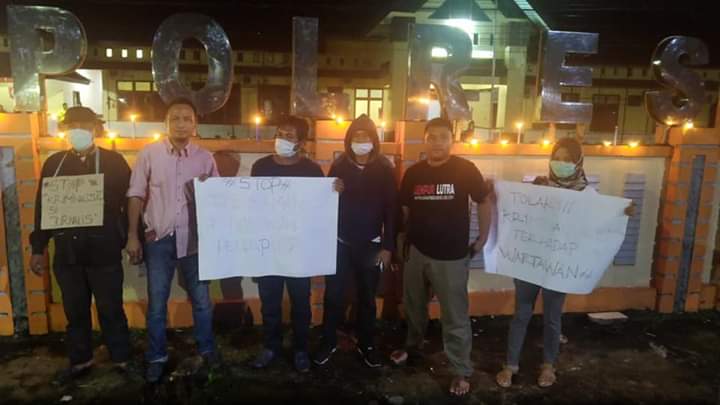 Lepongannews.com – LUWU UTARA – Forum Peduli Jurnalis (FPJ) Luwu Utara (Lutra) menggelar aksi simpatik di depan Mako Polres Luwu Utara, Sabtu (8/2/2020) malam.