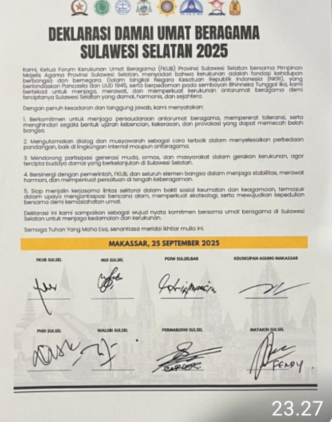 “Kami bertekad untuk menjaga, merawat dan memperkuat kerukunan antar umat beragama di Sulsel yang damai, dan harmonis,” jelasnya.