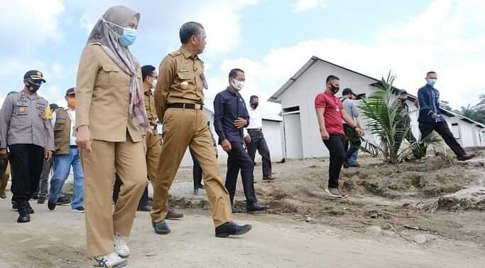 Gubernur Sulsel beserta rombongan melakukan peninjauan huntara yang sudah dibangun 100 unit untuk korban bencana banjir bandang lumpur beberapa waktu lalu (13/7/2020).