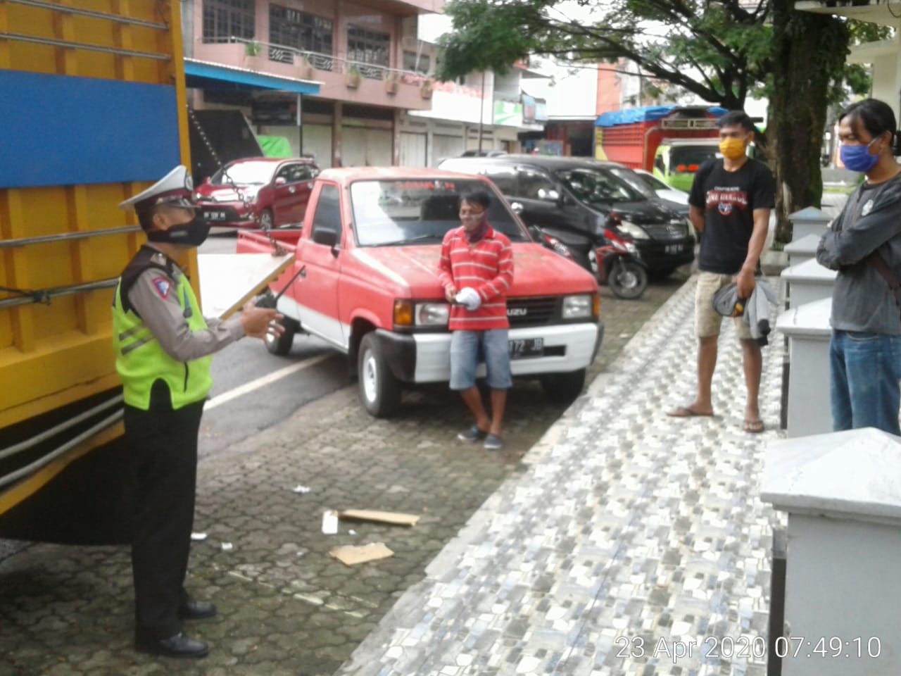 Lepongan News-Tana Toraja — Bripka Daniel, salah satu Personil Sat Lantas Polres Tana Toraja, yang terus melakukan upaya pencegahan C-19 (baca : Covid-19) melalui kegiatan penyampaian secara langsung himbauan physical distancing kepada orang atau warga yang ditemuinya saat sedang bertugas. Kamis (23/4/2020).