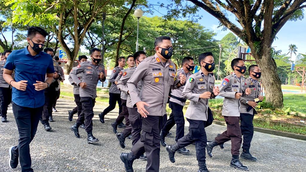 Saya tidak ingin ada personil kami yang jatuh sakit karena virus corona. Dan salah satu upaya yang kami lakukan, dengan mewajibkan untuk olahraga rutin setiap pagi hari.