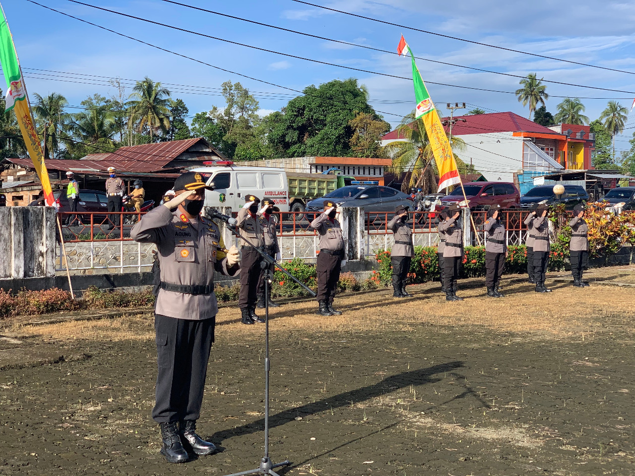 LUTRA, Lepongannews.com – Menyambut HUT Bhayangkara ke 74 yang jatuh pada 1 Juli 2020, Polres Luwu Utara (Lutra) Polda Sulawesi Selatan (Sulsel) melakukan ziarah rombongan ke Taman Makam Pahlawan Masamba di Kelurahan Kappuna dengan tabur bunga.