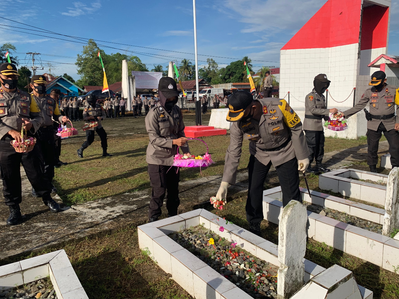 LUTRA, Lepongannews.com – Menyambut HUT Bhayangkara ke 74 yang jatuh pada 1 Juli 2020, Polres Luwu Utara (Lutra) Polda Sulawesi Selatan (Sulsel) melakukan ziarah rombongan ke Taman Makam Pahlawan Masamba di Kelurahan Kappuna dengan tabur bunga.