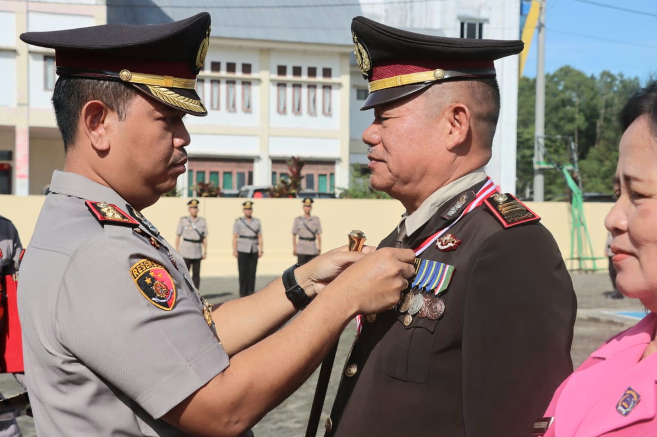 Dalam kesempatan tersebut, Kapolres juga menyampaikan apresiasi kepada AKP T. Sirenden yang telah memasuki masa purna bakti. “Terima kasih atas dedikasi dan pengabdian selama bertugas di Kepolisian. Teladan yang telah diberikan diharapkan menjadi inspirasi bagi seluruh anggota,” ungkapnya.(hta).