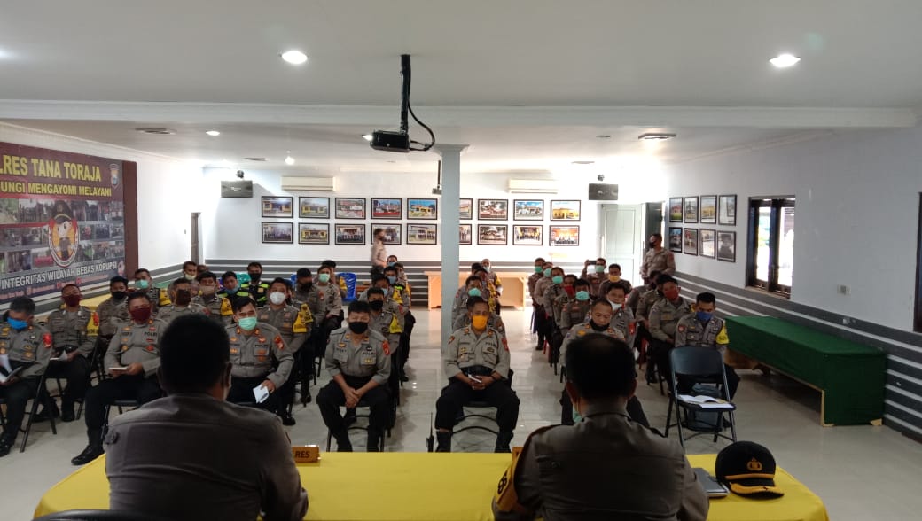 LeponganNews.com – Tana Toraja – Kapolres Tator AKBP Gregorius Liliek Tribhawono Iryanto, S.I.K., M.M didampingi Wakapolres Tana Toraja KOMPOL Jacob Lobo, S.H., M.H., mengadakan pertemuan dengan Para Kapolsek berikut para bhabinkamtibmas, Kamis (30/4/2020) di Aula Polres, pukul 09.30 WITA.