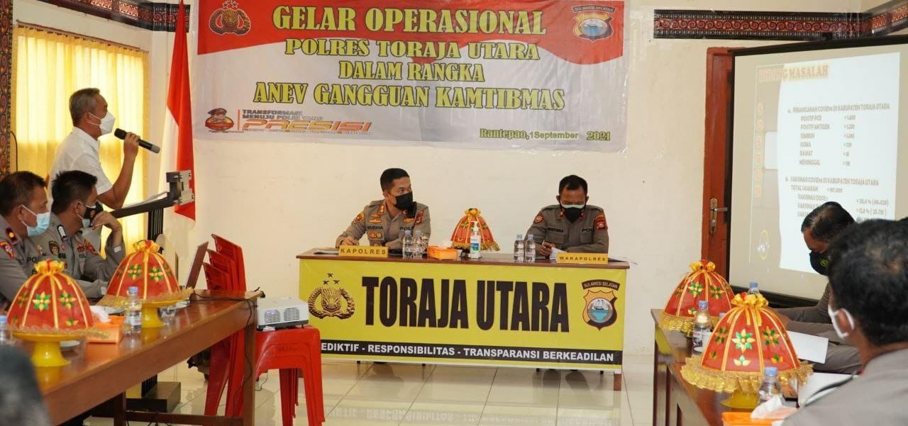 Maksud dan tujuan dari Anev Gelar Operasional bulanan, adalah untuk mengulas atau mengevalusi kembali pelaksanaan kinerja Polres Toraja Utara serta Polsek jajarannya dengan membandingkan data kinerja dan penyelesaian kasus satu bulan sebelumnya dengan bulan berjalan.