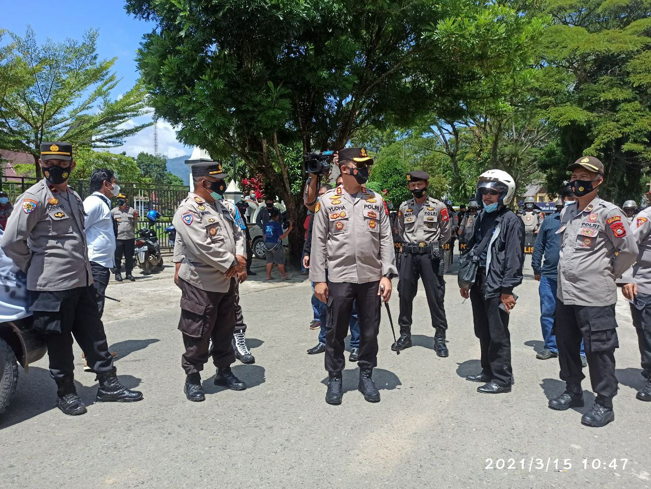 Lepongan News- Toraja Utara-Pengamanan unjuk rasa oleh satuan Polres Toraja Utara pada masyarakat yang menemakan diri Sangtiangkaran dikantor DPRD Toraja Utara.15/3/2021