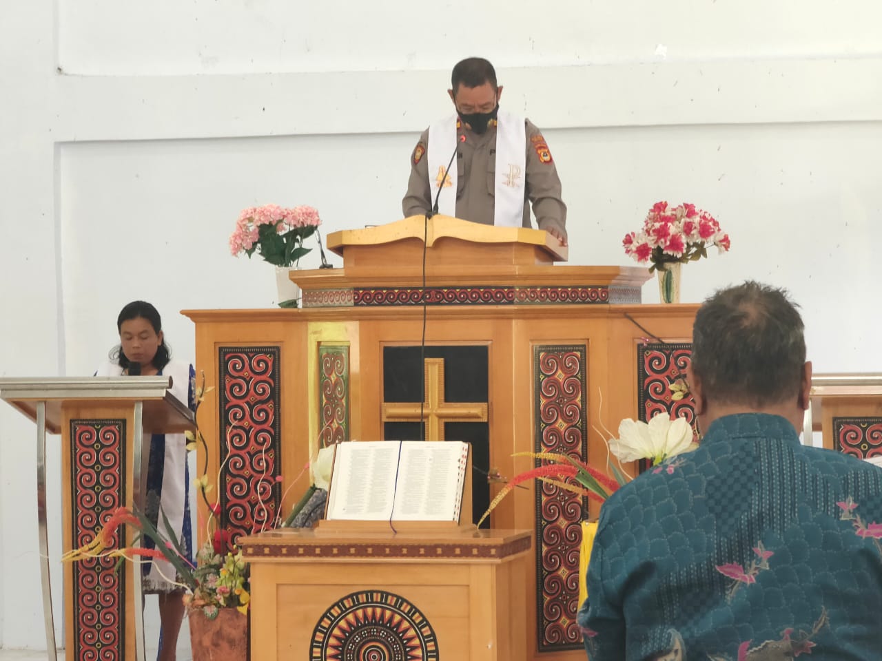 LEPONGAN NEWS Toraja Utara-bertempat di Gereja Toraja Jemaat Andulan, Lemb. Sa’dan Andulan Kec. Sa’dan Kab. Toraja Utara Kapolsek Sa’dan Balusu Iptu T. Sirenden bersama Ps. Panit Intelkam Bripka Arens H.L memakmurkan tempat ibadah dengan melaksanakan ibadah bersama Jemaat Andulan.pada 19/9/2021.