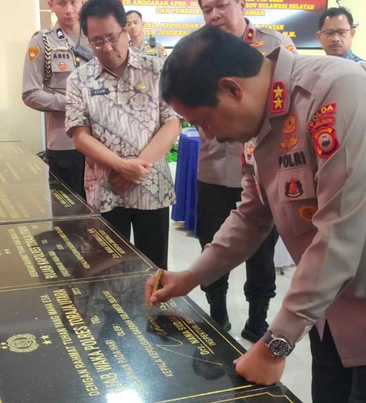 Lepongannews.com-Makassar – Kapolda Sulawesi Selatan Irjen Pol Nan SudjanaA meresmikan Mako Polres Toraja Utara melalui penandatanganan prasasti dan rumah jabatan Kapolres, Wakapolres dan asrama polisi bagi Dalmas yang bujang di Aula Gedung Bhayangkara Polda Sulawesi Selatan (Sulsel), Jumat (24/2/2023).
