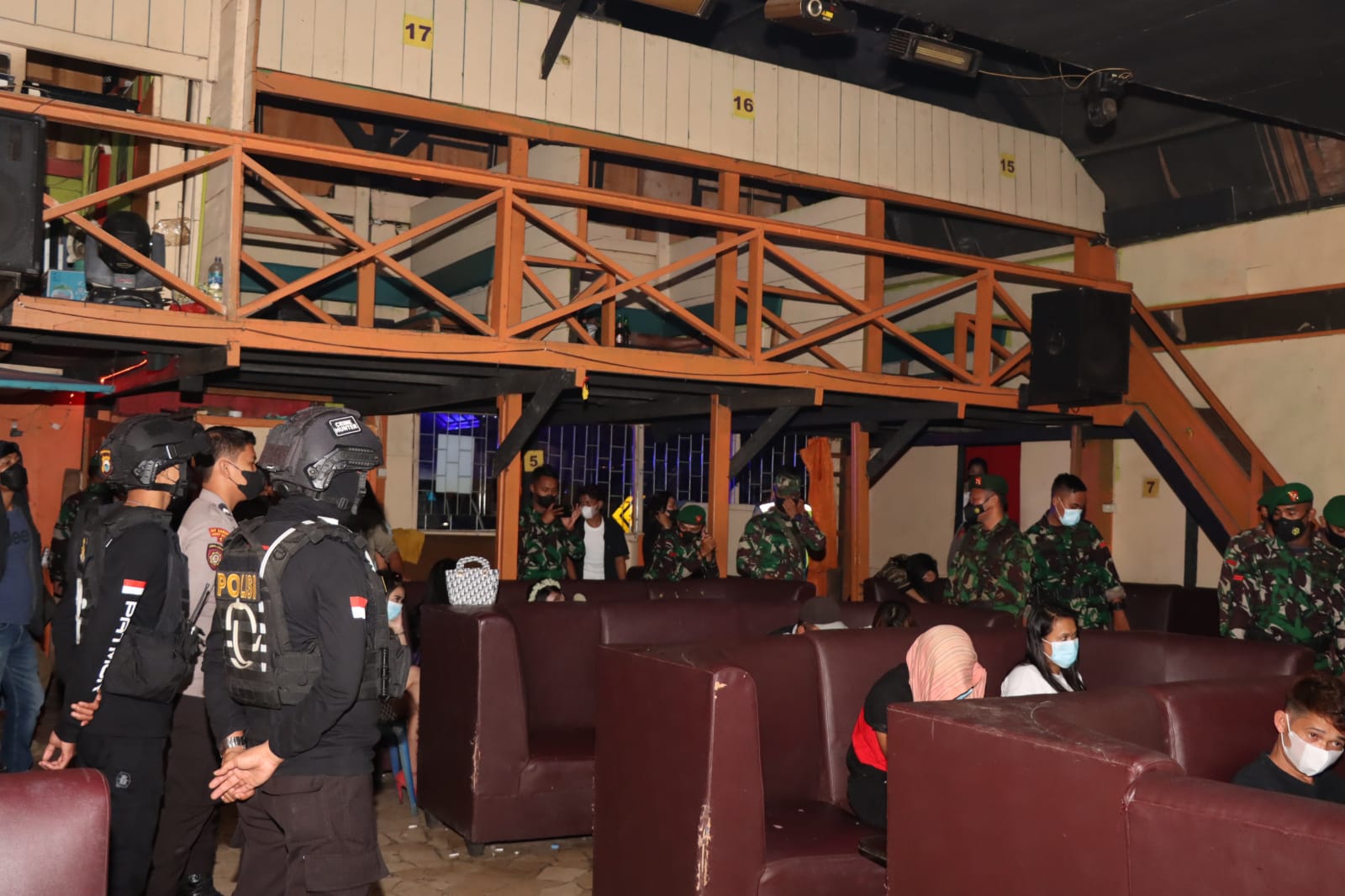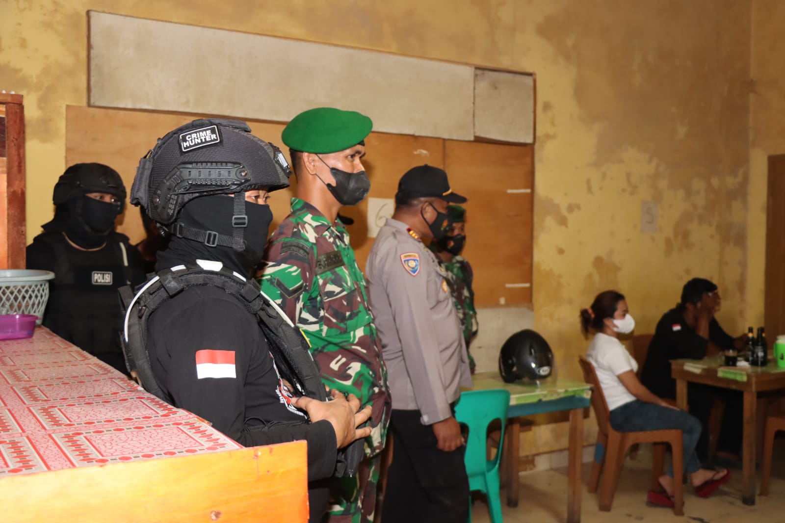 Selain melakukan patroli, para personel gabungan menyambangi tempat – tempat keramaian seperti cafe, warkop dan para pemuda atau masyarakat yang sedang berkumpul.