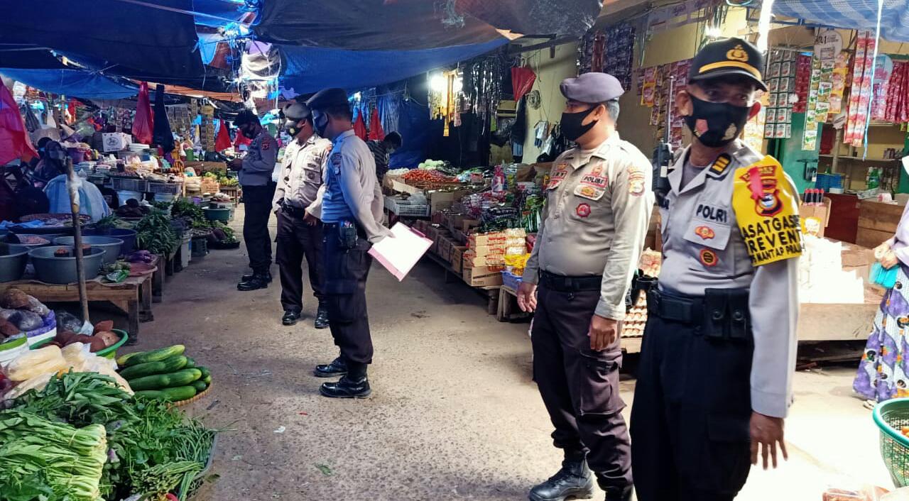 Kasat Sabhara Polres Lutra, AKP Abu Bakar Salihi didampingi Kaur Bin OPS Sabhara Ipda Yaris, menyampaikan himbauan serta melaksanakan kegiatan Operasi Yustisi di pasar Sentral Masamba, Rabu (30/9/2020).