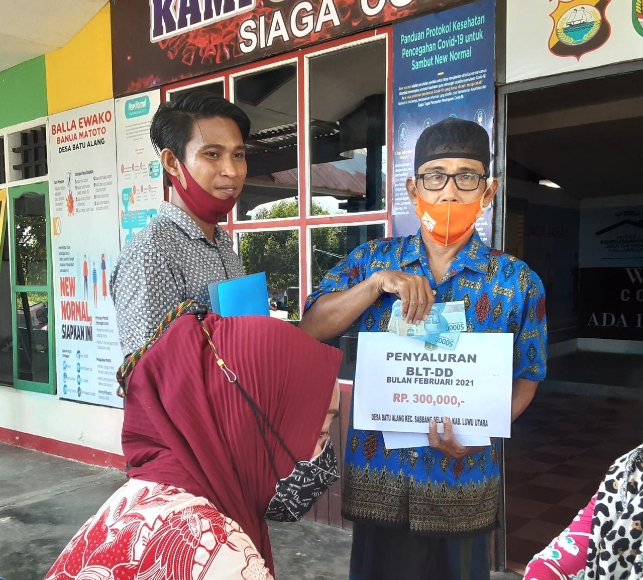 Dan untuk mengurangi dampak tersebut, Pemerintah Desa Batu Alang Kecamatan Sabbang Selatan Kabupaten Luwu Utara (Lutra) Sulawesi Selatan (Sulsel), Kamis 17 Juni 2021 kembali menyalurkan Bantuan Langsung Tunai (BLT) Dana Desa Tahun Anggaran 2021.