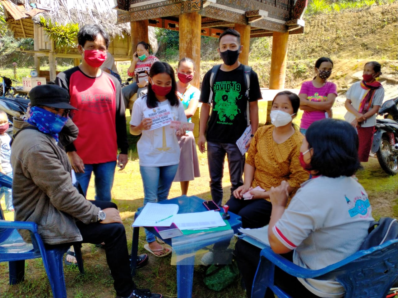 Lepongannews.com – Toraja Utara – Pemerintah Daerah Kabupaten Toraja Utara melalui PLT sekertaris Dinas Pemberdayaan Masyarakat dan Lembang (DPML) Agustinus Lalong Sumule, mewakili Bupati menyerahkan Bantuan Langsung Tunai Dana Desa (BLT-DD) secara simbolis kepada 6 kepala keluarga dari total penerima manfaat 159 KK warga Lembang Dende’, Sabtu (23/5/2020) di Kantor Lembang Dende’, Kecamatan Denpina.