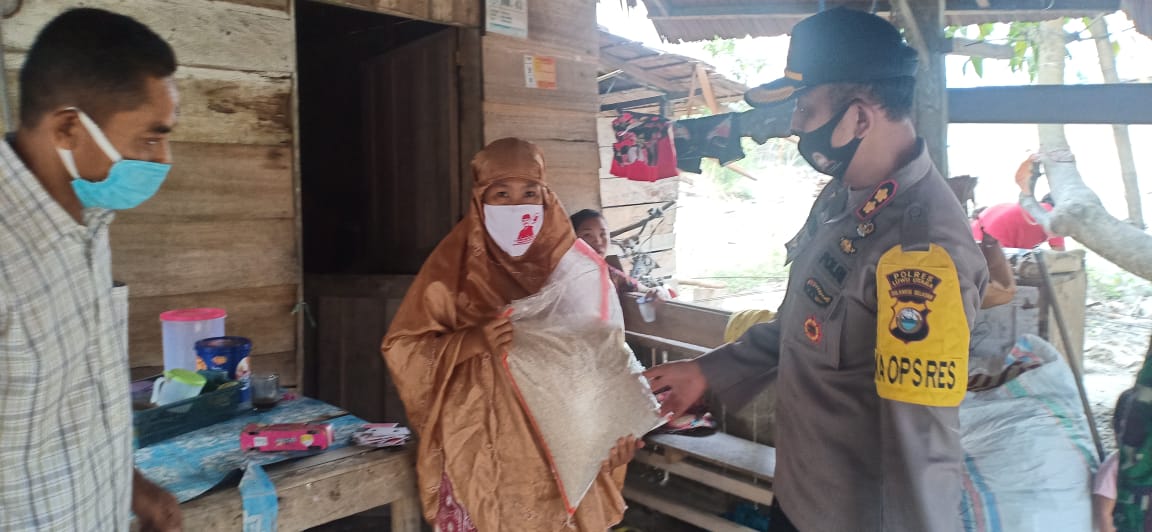 Kegiatan kepedulian kasih Polres Lutra untuk masyarakat terdampak banjir bandang lumpur di Malimbu dan sekitarnya dengan membagikan beras.