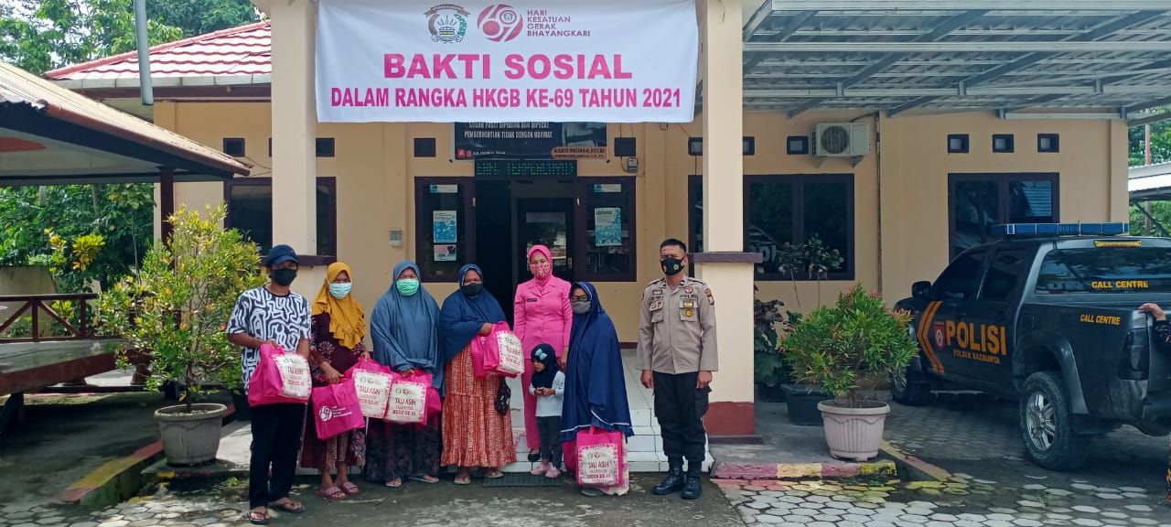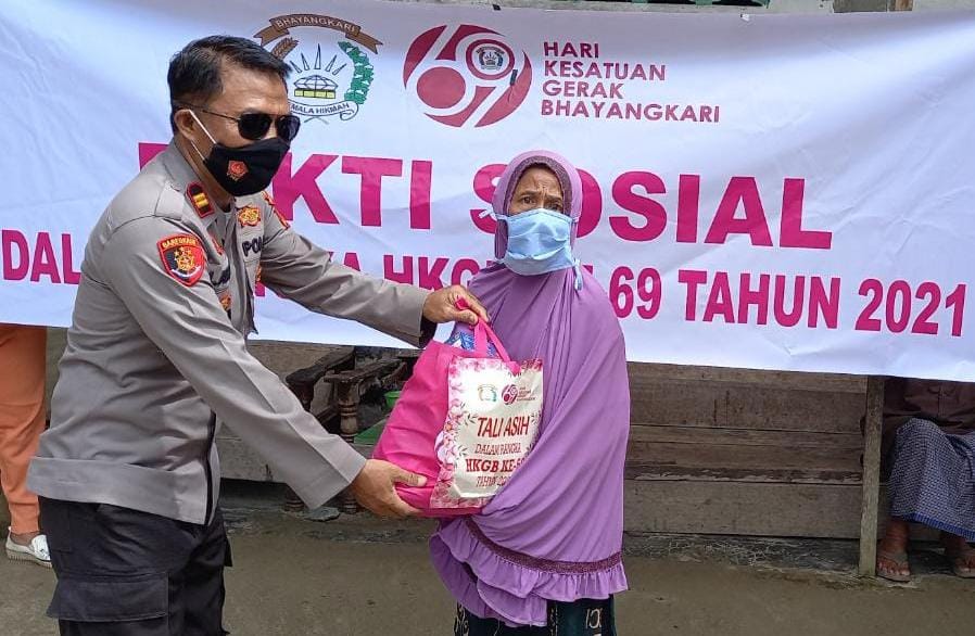 Acara giat ini yang diikuti oleh anggota Bhayangkari kedua Polsek tersebut dan personil kedua Polsek memberikan bantuan sembako.