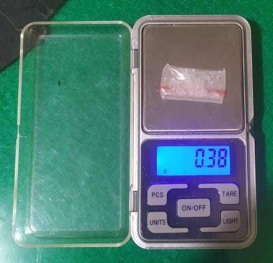 Setelah dilakukan penggeledahan berhasil diamankan 0,38 gram shabu serta barang bukti lainnya.
