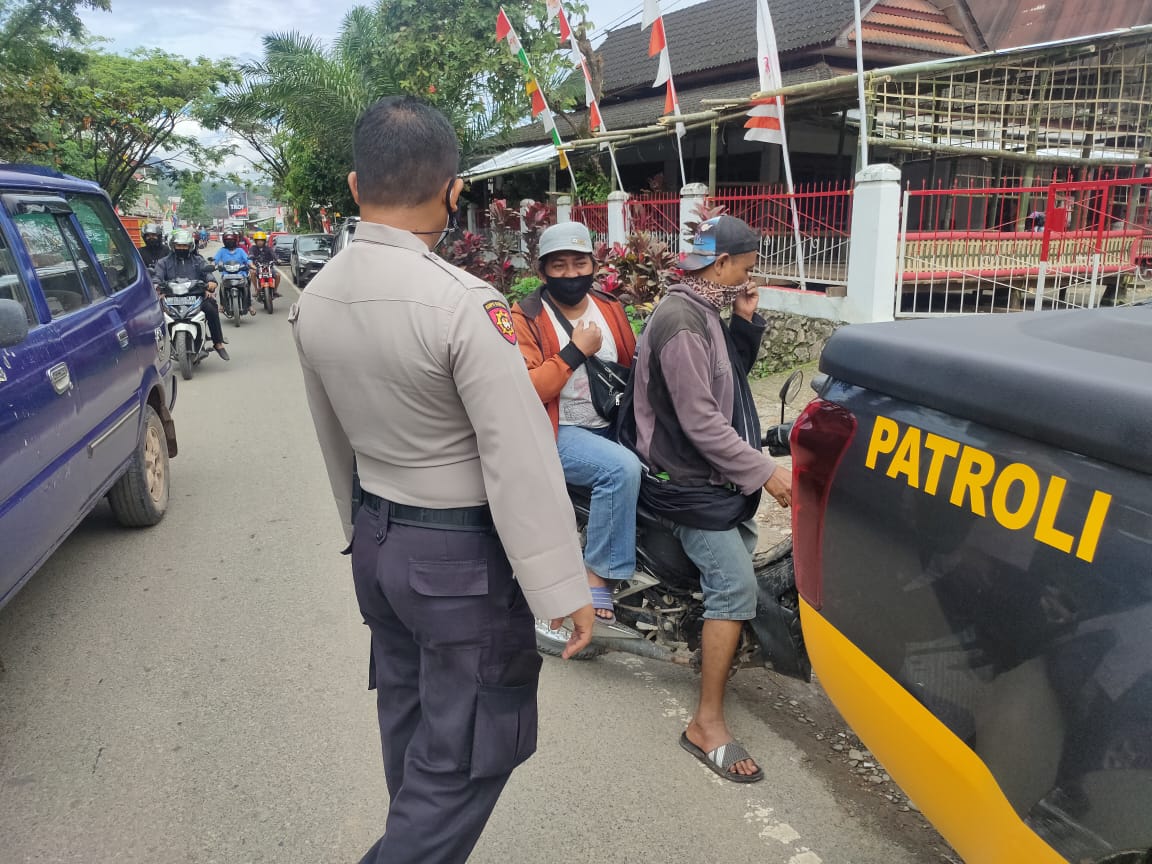 Anggota Satuan Samapta Polres Toraja Utara juga tidak henti hentinya menyampaikan pesan-pesan kamtibmas dan edukasi tentang protokol kesehatan pencegahan covid 19.