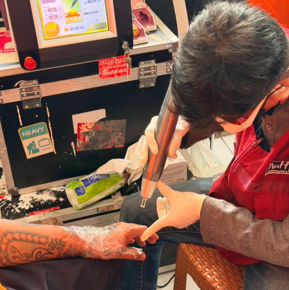 dr Muh Ihsan Kitta menjelaskan bahwa, hapus Tato dengan menggunakan metode Teknik Laser ini mempermudah proses terangkatnya tinta di dalam kulit.