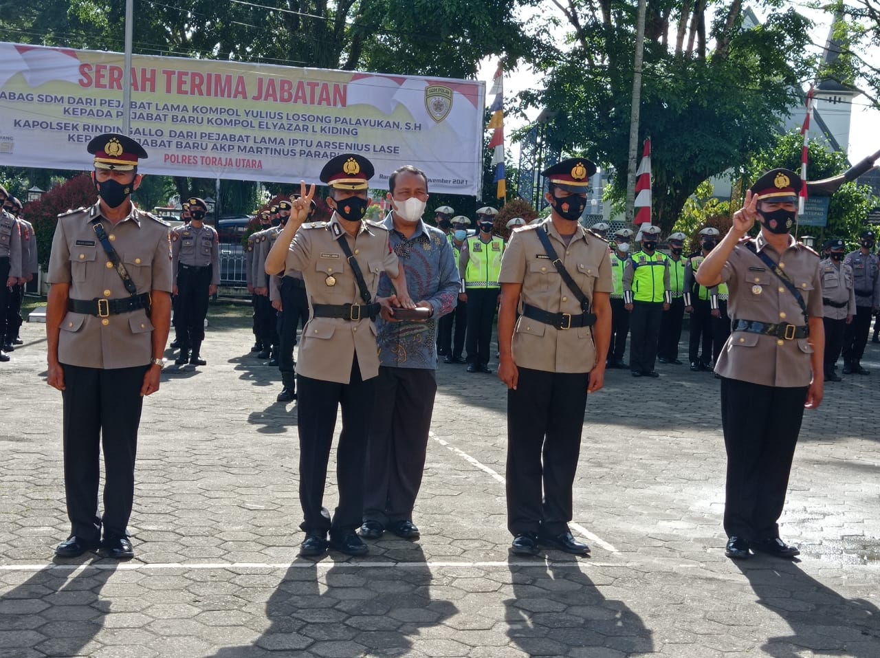 Dua perwira yang melakukan sertijab itu yakni, Kompol Yulius Losong Palayukan sebelumnya Kabag SDM Polres Toraja Utara digantikan Kompol Elyazar L Kiding, dan IPTU Arsenius Lase selakj Kapolsek Rinding Allo digantikan AKP Martinus Pararuk.