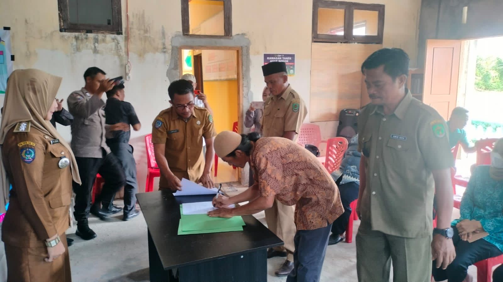 Prosesi serah terima ditandai dengan penandatanganan berita acara serah terima jabatan disertai dengan penyerahan barang inventaris desa dan disaksikan oleh Camat Sabbang, Bhabinkamtibmas, Babinsa,
