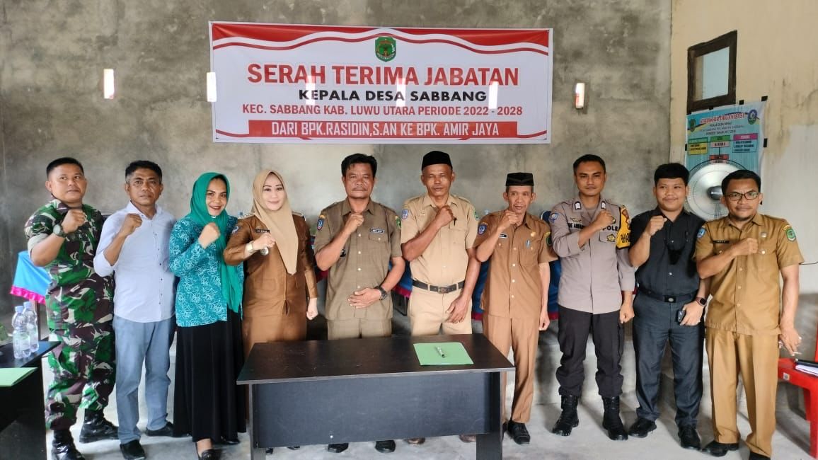 Lepongannews.com-Luwu Utara – Camat Sabbang, Sitti Kidar telah menghadiri serah terima jabatan (sertijab), Kepala Desa Sabbang dari Pjs Kepala Desa Rasidin ke Kepala Desa Sabbang yang defenitif, Amir.