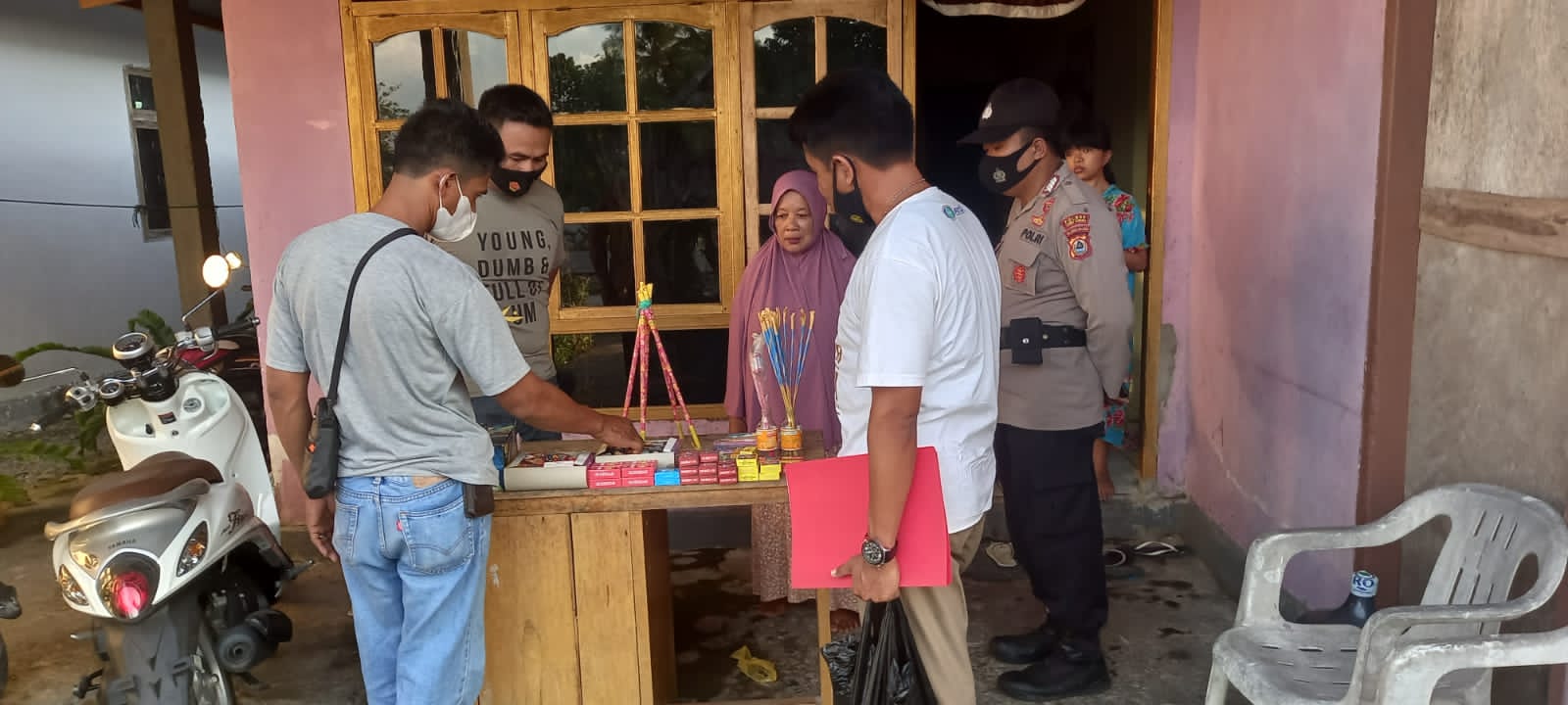 Baru satu desa kami sisir penjual petasan atas nama Andi Jumawati kami sita 24 petasan, 24 petasan peluncur dan 4 petasan tembak, sedang di Nurhasifah 5 petasan dan 8 petasan peluncur.