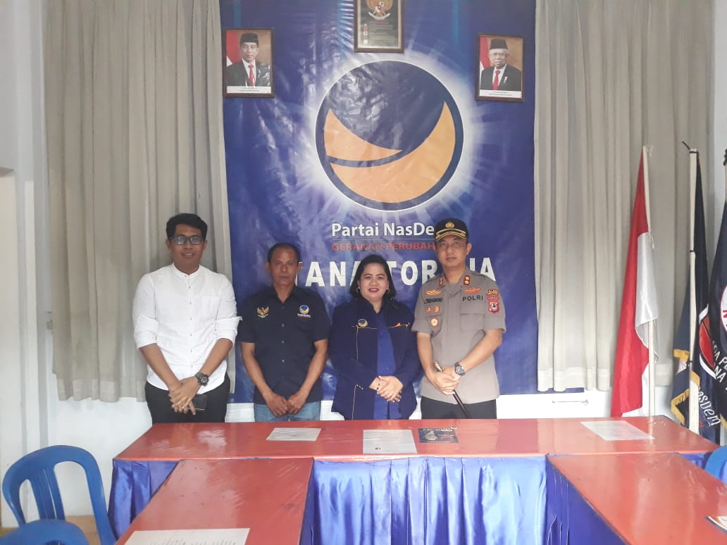 Sekitar Pukul 15.30 Wita, Liliek Tribhawono tiba di kantor sekretariat Nasdem, di dampingi oleh salah satu perwiranya, kunjungan silaturrahmi Kapolres Tana Toraja ini diterima langsung oleh Ibu Evivana yang juga didampingi oleh pengurus harian parpol Nasdem.