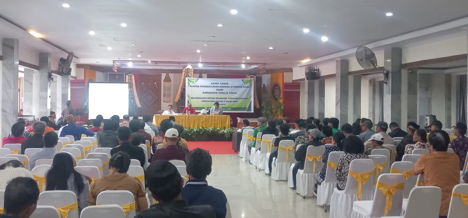 Lepongan News, Rantepqo.- Tim Percepatan Pemekaran Daerah Otonom Baru (DOB) Toraja Timur menggelar rapat akbar untuk menampung aspirasi dari semua elemen dan digelar di Hotel Hiltra, Kel. Karassik, Kec. Rantepao, Kab.Toraja Utara Rabu, (13/8/2025).