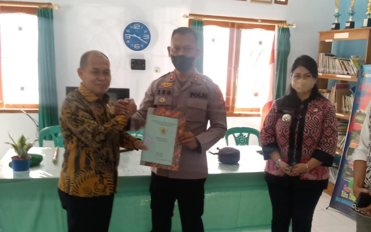 Penyerahan tanah secara hibah sesuai dengan surat akta Hibah/Sertifikat dari Kantor Badan Pertanahan Torut yang diserahkan langsung oleh Kepala Kantor Pertanahan Toraja Utara Johanis Buapi A. Ptnh, M.Si ke Kapolres Toraja Utara AKBP Eko Suroso, S.IK.