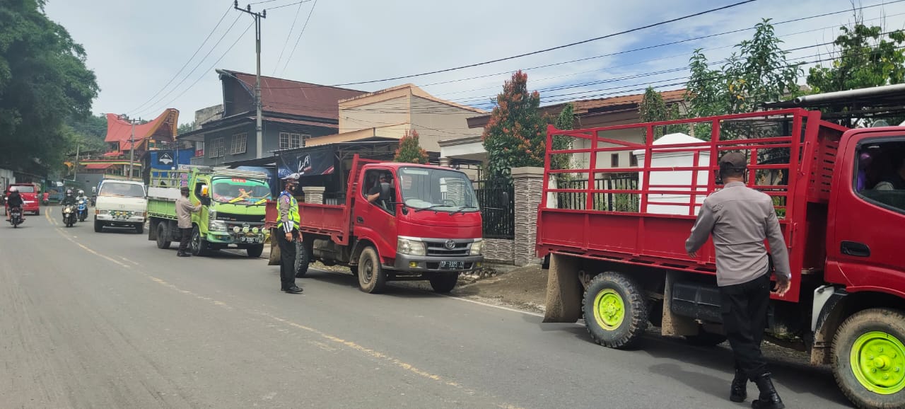 Terpantau, himbauan akan di tegakkannya ketentuan muatan bagi kendaraan truk, dilaksanakan di ruas jalan Nusantara, Jl. Tritura, Jl. Pongtiku, dan Jl. Jend. Sudirman.