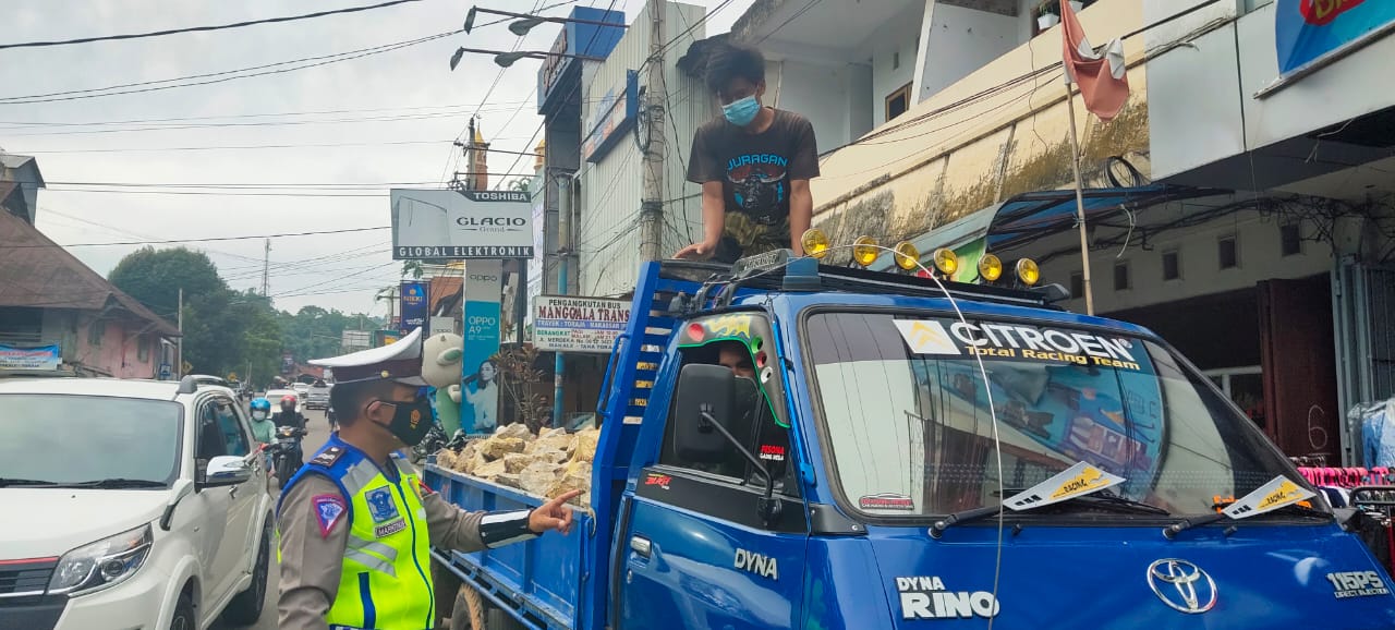 Lepongan News-Tana Toraja — Dalam rangka pencegahan penyebaran covid -19 yang disebabkan oleh kerumunan banyak orang pada sebuah pesta, Polres Tana Toraja kembali melakukan terobosan pembatasan mobilitas, yaitu dengan cara akan menegakkan UU Lalu Lintas NO. 22 Tahun 2009 yang memuat tentang aturan muatan kendaraan truck. Minggu (24/01/2021).
