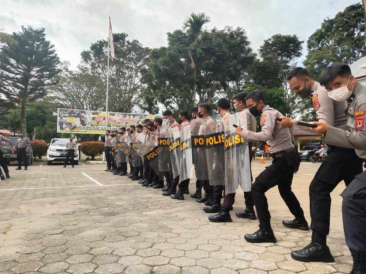 LepoganNews.com – Toraja Utara – Polres Toraja Utara menggelar latihan Pengendalian Massa (Dalmas) bertempat di halaman apel Mapolres Polres Toraja Utara, Jumat (07/08/2020).