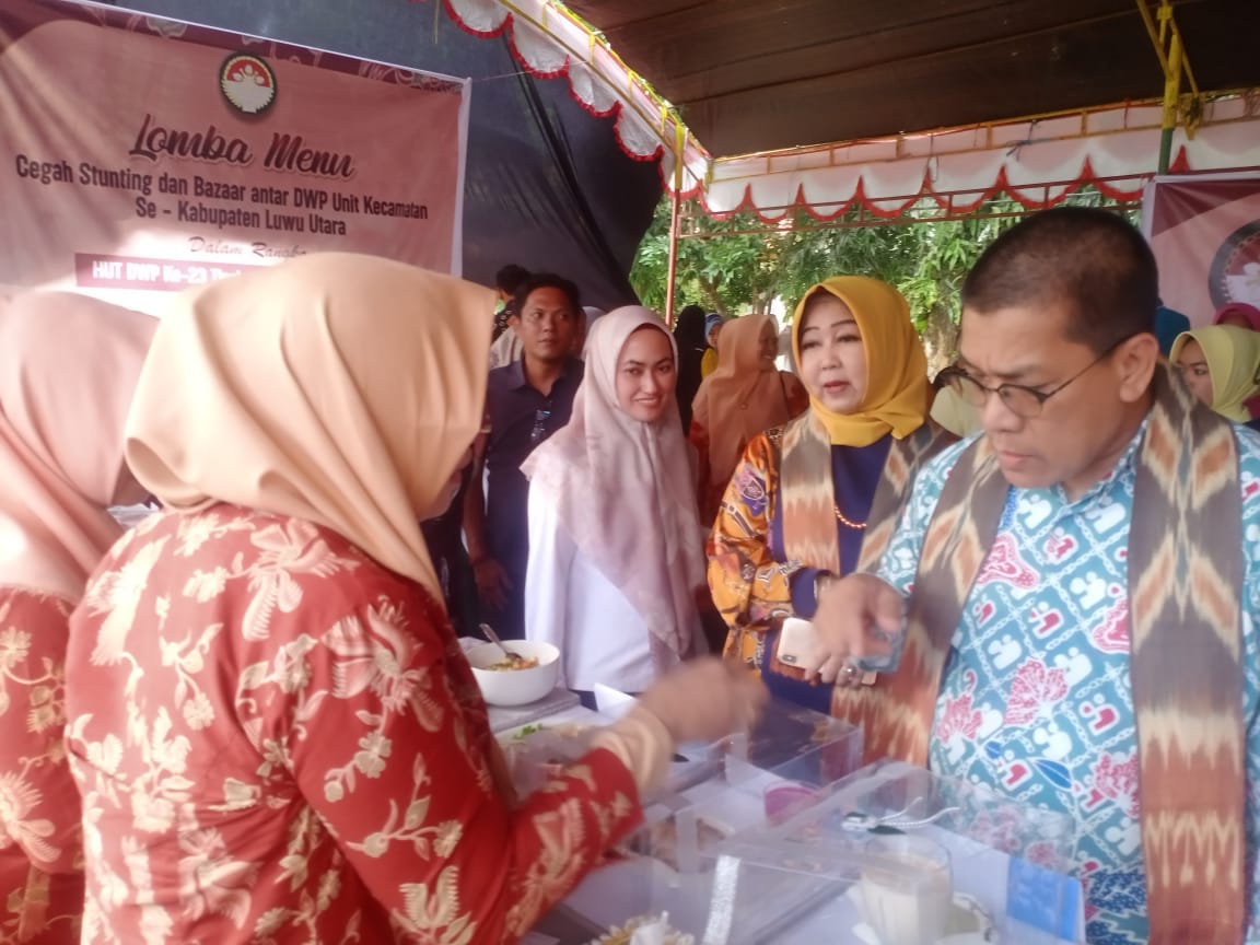 Pameran Menu Cegah Stunting yang diinisiasi Dinas Pemberdayaan Perempuan, Perlindungan Anak, Pengendalian Penduduk dan Keluarga berencana (DP3AP2KB) Kabupaten Luwu Utara ini, diikuti oleh Ibu-Ibu Dharma Wanita dari beberapa kecamatan dalam wilayah Kabupaten Luwu Utara.