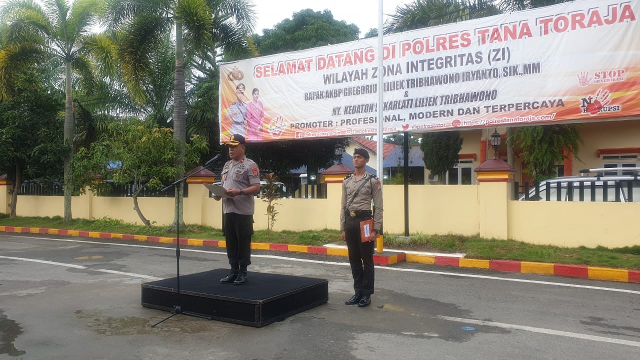 Pada amanat Inspektur Upacara, Kompol Jacob Lobo SH MH, membacakan amanat tertulis dari  Kapolres Tana Toraja AKBP. Liliek Tribhawono Iryanto SIK MM.