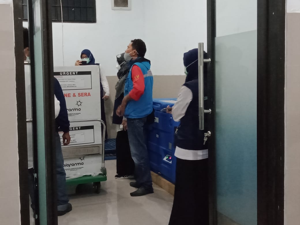 Vaksin tersebut tiba di gudang Farmasi Dinas Kesehatan Tana Toraja sekitar pukul 07.00 WIB. Kemudian disimpan di tempat penyimpanan khusus Vaksin, Dinas Keesehatan Tana Toraja.